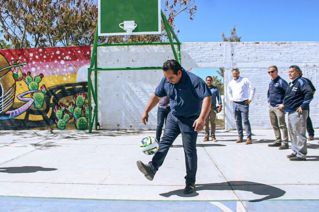 Incluso la cancha de fútbol rápido ya fue rehabilitada, se repusieron las gradas, se pintó el lugar y se colocó malla, lo que contribuye al beneficio de las familias villarreyenses; además jóvenes participaron en la pintar unos murales que permitirán darle una mejor imagen a este sitio deportivo.