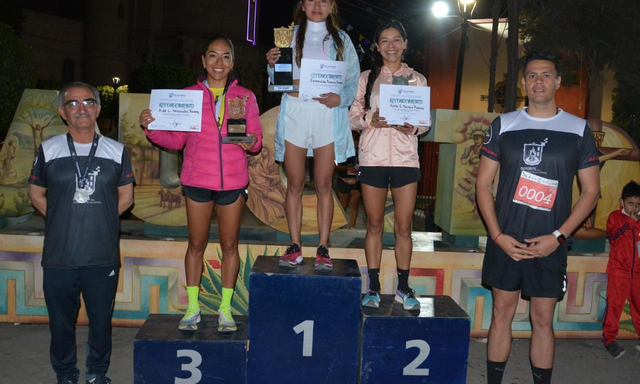 1.- Paula Nicolle Campos Martínez con 23 minutos y 15 segundos. 2.- Itzel Flores Martínez con 23 minutos y 34 segundos. 3.- Elvia Leticia Ramírez con 23 minutos y 36 segundos.