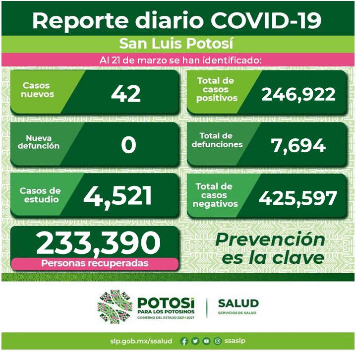 Los Servicios de Salud reiteran el llamado a potosinas y potosinos para que asuman una cultura de autocuidado, el uso de cubrebocas es opcional, pero se recomienda su uso en lugares cerrados o mal ventilados, y para personas adultas mayores o con comorbilidades que asistan a lugares con alta concentración de personas, así como lavar las manos de manera frecuente, practicar el estornudo de etiqueta, guardar sana distancia y ventilar espacios.