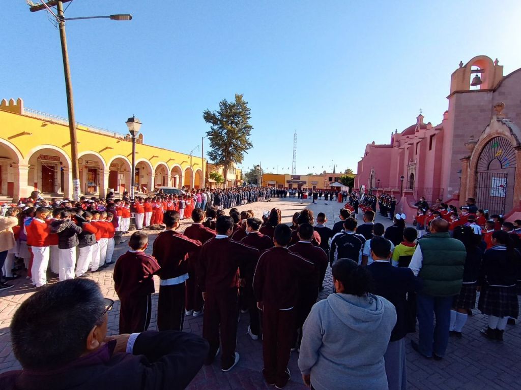 En el acto cívico participaron estudiantes de diferentes planteles educativos especialmente de la Escuela Primaria “Benito Juárez”, y en el que estuvo presente la directora de Educación Municipal, Verónica Galván Salazar y funcionarios municipales.