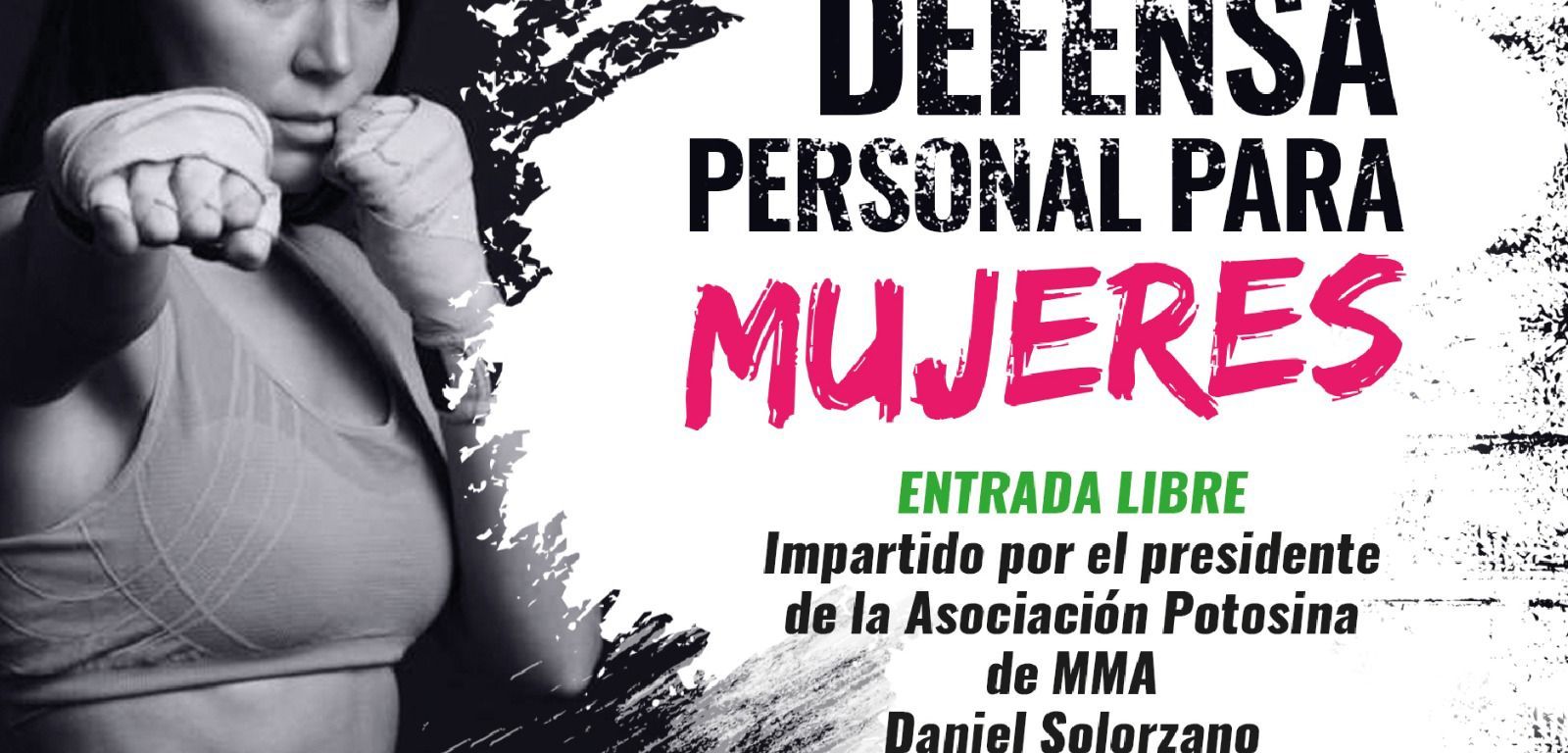 El Gobierno del cambio que encabeza Ricardo Gallardo Cardona, a través del Instituto Potosino de Cultura Física y Deporte (Inpode), en coordinación con la Asociación Potosina de Artes Marciales Mixtas, invita al curso dirigido a mujeres de defensa personal, que se llevará a cabo el próximo 24 de marzo en el salón de Luchas de la Unidad Deportiva Adolfo López Mateos, impartido por Daniel Solórzano.