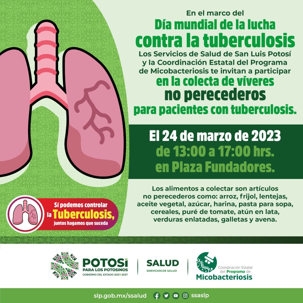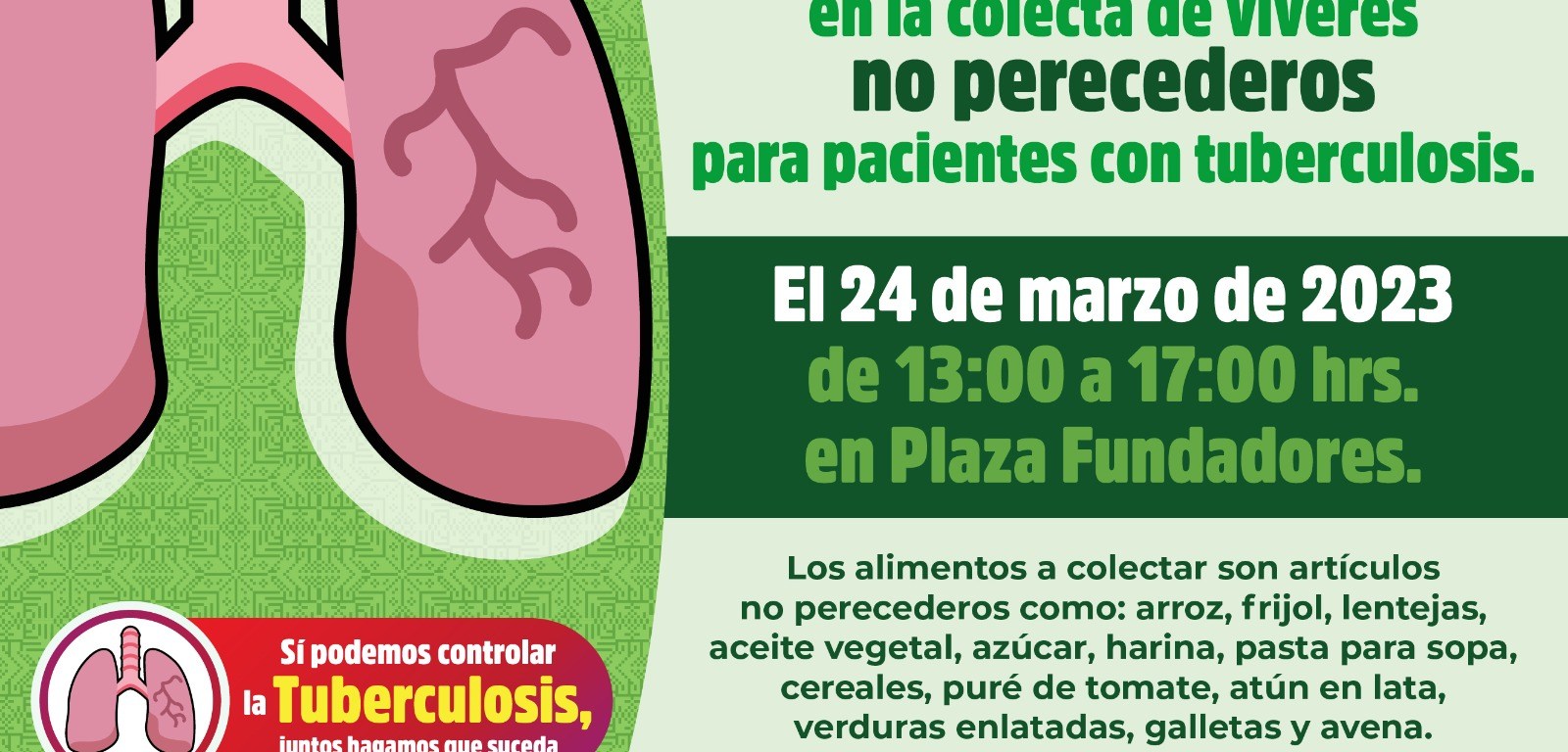 Se realizará una colecta de alimentos para personas que viven con la enfermedad y se entregarán los resultados y reconocimientos del Concurso de Dibujo “Haz Ruido la tuberculosis existe, es curable y el tratamiento es gratuito” organizado en conjunto con la Secretaría de Cultura, y también del concurso a través de TikTok “Viralizate sin TB”.