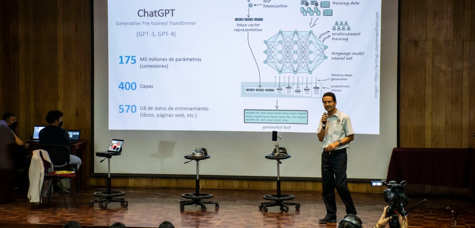 La tecnología, que ha llegado a las masas, ha provocado dudas sobre su uso y sobre todo, la ética de usarlo. Ante ello, la Universidad Autónoma de San Luis Potosí (UASLP), por medio de la Facultad de Ingeniería, presentó la conferencia “Chat GPT: Disrupción de las Ciencias Computacionales”, dictada por los doctores José Ignacio Nuñez Varela, coordinador en Ingeniería en Sistemas Inteligentes y Héctor G. Pérez Varela, jefe del área de Ciencias de la Computación.