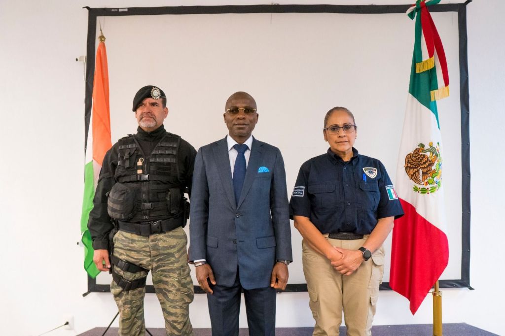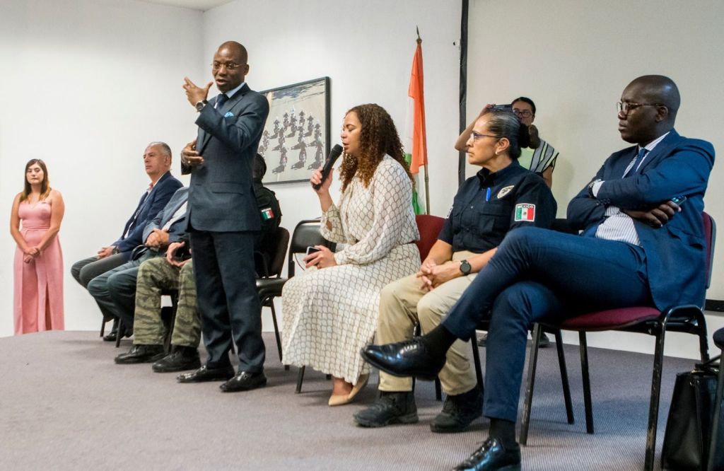 El Instituto de Profesionalización Policial de la Secretaría de Seguridad y Protección Ciudadana (SSPC) del Ayuntamiento de San Luis Potosí tuvo el honor de recibir la visita del Embajador Extraordinario y Plenipotenciario de la República de Costa de Marfil en México, Robert Ly Djérou, quien dirigió un mensaje a los cadetes municipales sobre la importancia de la colaboración de la policía con la ciudadanía.