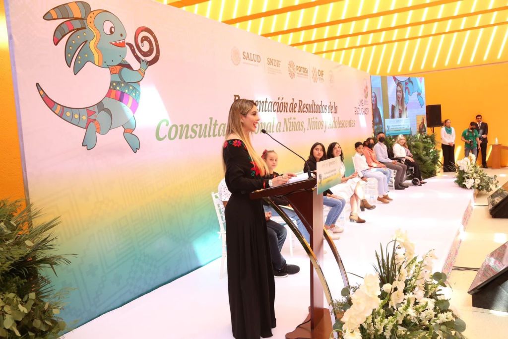 En el evento, Ruth González Silva, presidenta honoraria del DIF Estatal, agradeció a nombre del Gobierno del cambio que encabeza Ricardo Gallardo Cardona, por la presencia y apoyo de las autoridades del Sistema Nacional DIF. “La infancia tiene su propia manera de pensar y de sentir, dan forma al presente, por eso la importancia de crear espacios de participación para entender sus necesidades, propuestas, intereses, preocupaciones, así como reconocer la importancia de su contribución para tomar decisiones”, expresó González Silva.