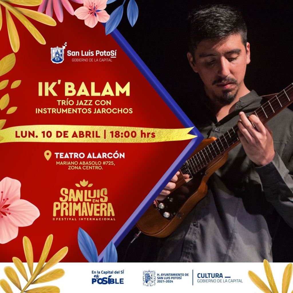 Lunes 10 de abril a la misma hora, se presenta Ik´Balam, Trío de Jazz. Ik’Balam Moyrón Castillo nació y creció en Tlalnelhuayocan, un pueblo pequeño de Veracruz, México. Empezó a tocar el requinto jarocho a los 13 años en fandangos y talleres de son jarocho. Desde entonces, ha enfocado su trabajo académico y musical en el requinto jarocho, el instrumento melódico principal de la tradición del son jarocho.