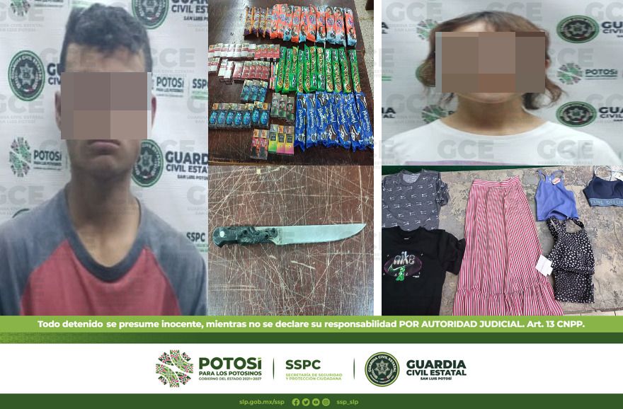 Derivado de la respuesta inmediata de la Guardia Civil Estatal (GCE) a los reportes ciudadanos atendidos en el Sistema de Emergencias 911, en distintas acciones, un hombre y una mujer fueron detenidos después de que ser acusados de presunto robo de mercancía en comercios.
