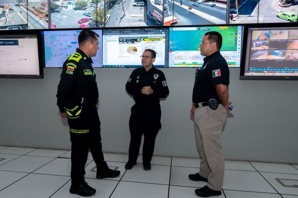 Durante su visita a las instalaciones de la SSPC, el Coronel Ospina Baena realizó un recorrido al C4 Municipal y al área de Justicia Cívica, donde constató los avances en materia de seguridad enfocados a brindar un servicio de calidad y garantizar la seguridad de la ciudadanía.