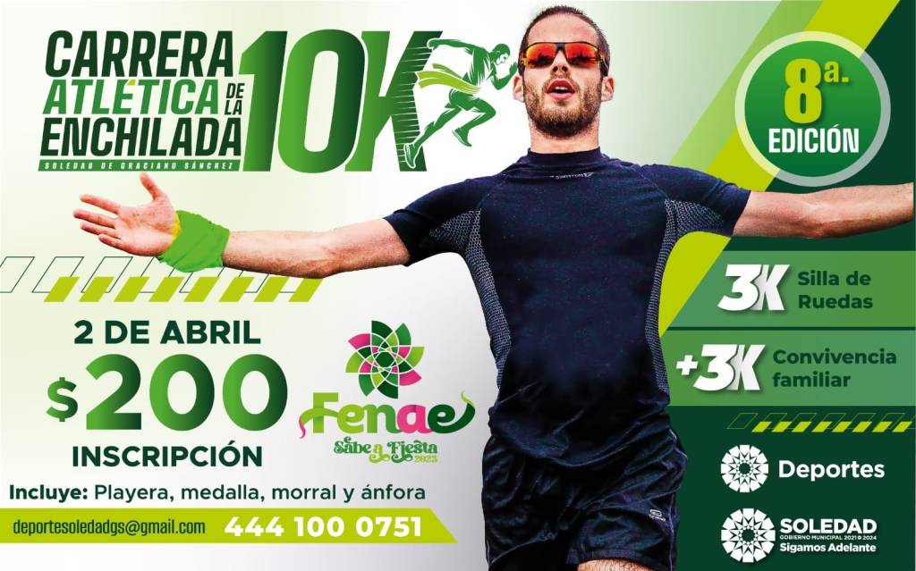 Continúan abiertas las inscripciones para ser parte de la tradicional Carrera de la Enchilada, la cual se realizará este próximo domingo 2 de abril a las 8 de la mañana.