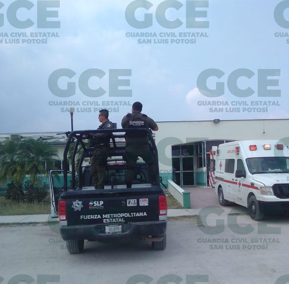 Al arribo de los oficiales estatales, tienen contacto con integrantes de la Policía Municipal quienes indicaron que la víctima era un masculino que presentaba varias lesiones producidas por proyectil por arma de fuego siendo trasladado al hospital comunitario de Tamuín, tras presentar cinco impactos de bala en distintas partes del cuerpo.