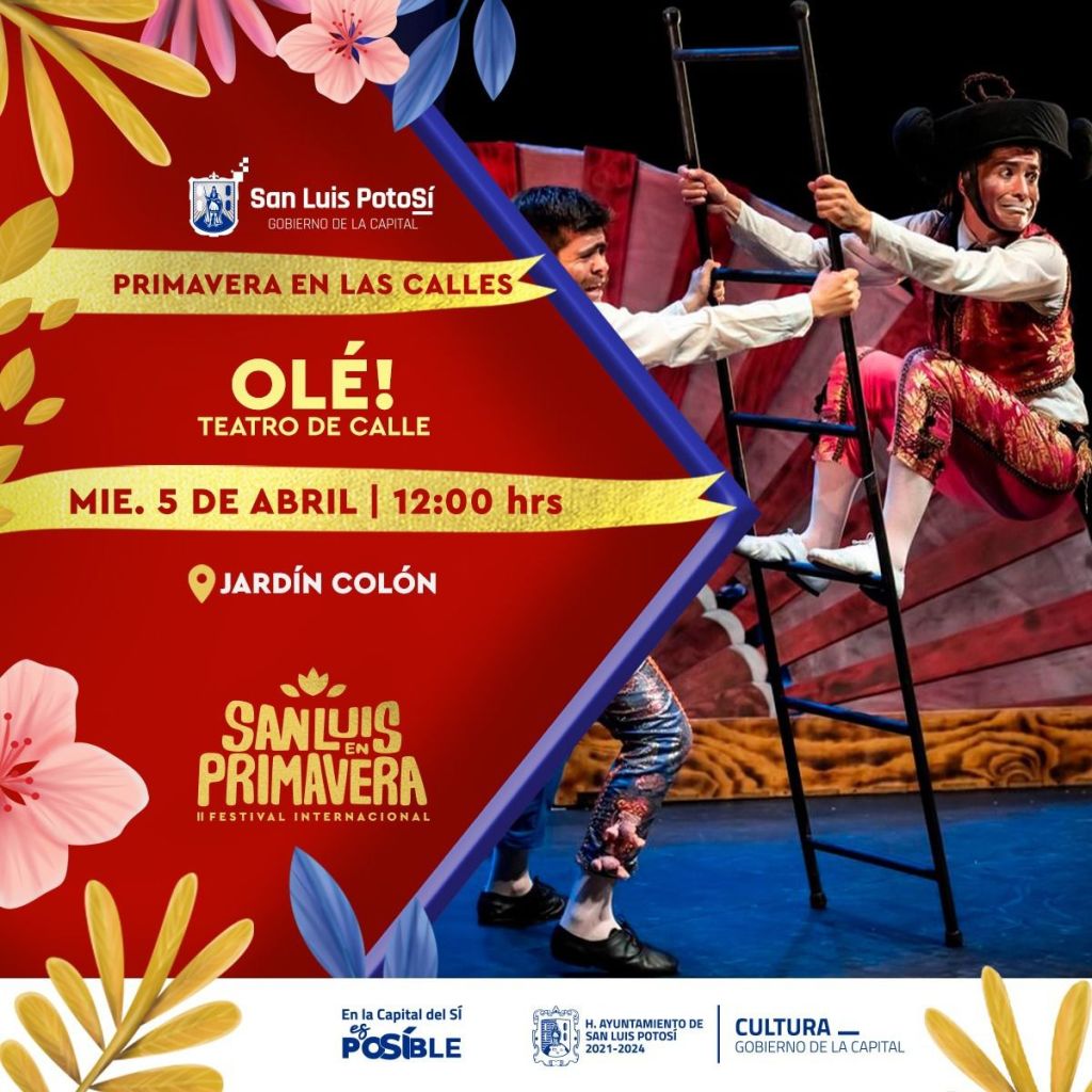 Miércoles 5 de abril, al mediodía en Jardín Colón, tendremos teatro de calle “Olé”; en el que los hermanos Malaba Méndez en la última corrida de todos los tiempos, desafían las más feroces bestias que ningún héroe épico ha logrado dominar. Malabarismo absurdo, equilibrismo fijo y sobre todo sonrisas por montón.