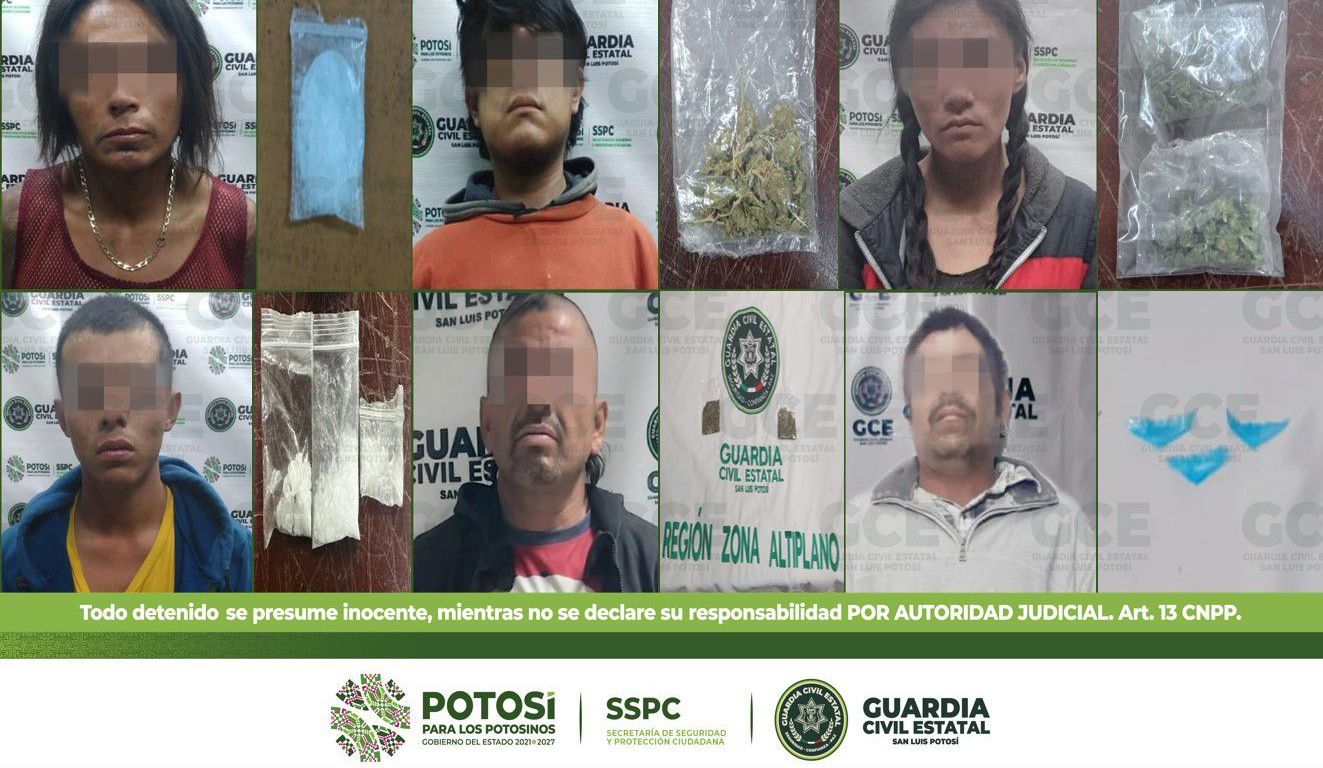 Dentro de la capital potosina, los uniformados detuvieron a Oscar de 44 años de edad en la colonia Prados Segunda Sección, tras asegurarle una dosis de marihuana y 13 cigarros del mismo enervante; en la colonia Morales, Miguel de 21 años resultó detenido con dos dosis de “cristal”; otro de los hechos fue en la colonia Torremolinos, donde fue detenido José de 24 años con una dosis de marihuana.