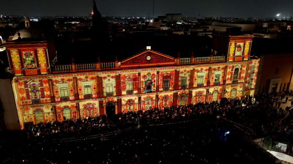 Previo al concierto, hubo un sorprendente mapping en el edificio central de la UASLP, basado en los siete barrios de la Capital.