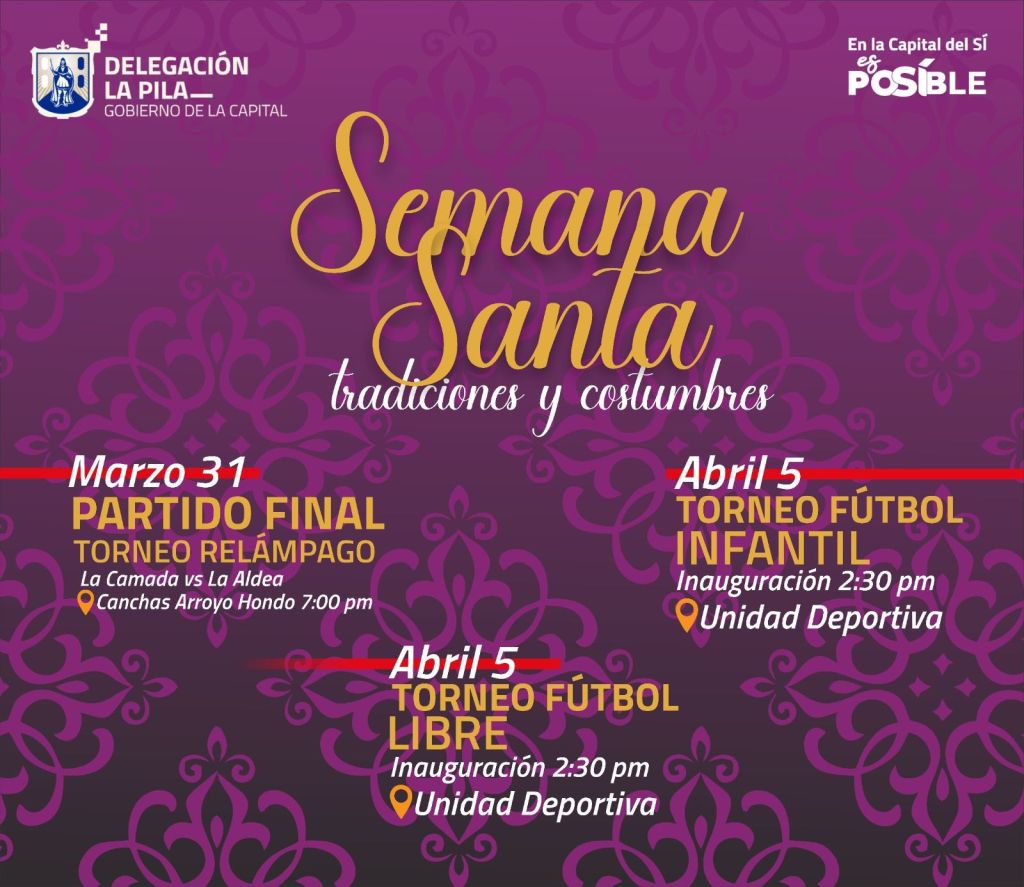 El delegado afirmó que año con año en La Pila se realizan múltiples actividades culturales y deportivas durante Semana Santa como parte de sus tradiciones y costumbres, por lo que se espera una afluencia de más de 5 mil personas, por lo que el personal de Protección Civil y Comercio estarán al pendiente de que todo se desarrolle de manera ordenada y con seguridad