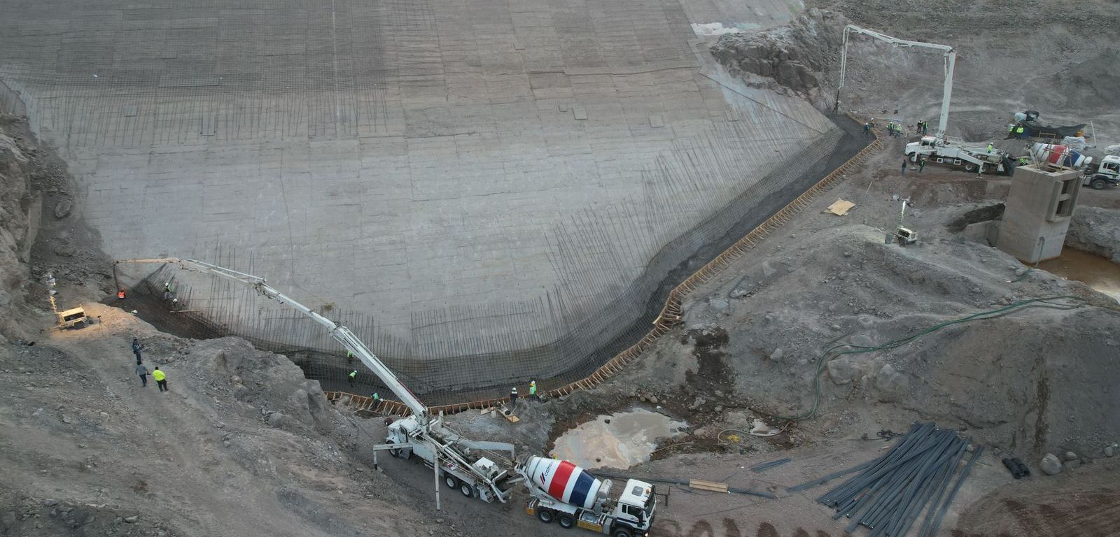 “Desde el arranque de la obra iniciamos el desazolve del vaso captador, retirando cientos de toneladas de tierra hasta llegar a la roca de desplante de la cortina, una vez ahí se perforó la zona y se inyectó concreto para el tratamiento de las oquedades y grietas en la base, lo que sostendrá la nueva zapata de cimentación hecha con acero y 450 metros cúbicos de concreto reforzado e impermeable, finalmente se trabajará en la loza que cubrirá toda la cortina lo que impedirá filtraciones”, explicó.