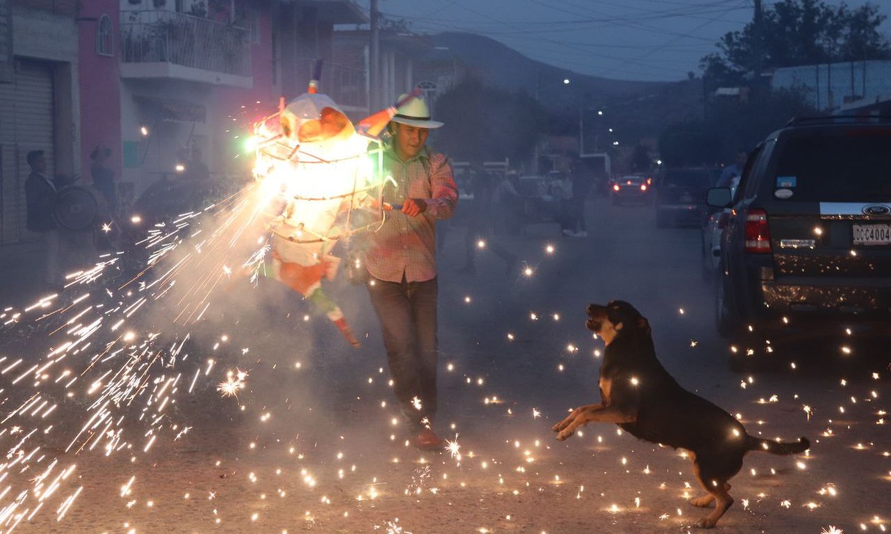En el jardín principal se reunieron los participantes para participar en la Callejoneada, quienes en un ambiente alegre y de fiesta degustaron quesos y participaron en la cata de mezcal, acompañados de la música de banda y con juegos pirotécnicos se realizó el recorrido por las principales calles de la cabecera municipal, siendo una mascota que se incorporó al espectáculo de pirotecnia y se robó la atención de los asistentes.