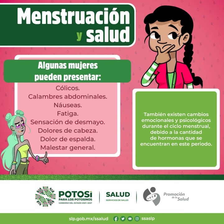 Los síntomas que pueden presentarse en este periodo explicó, son cólicos, fatiga, dolor de espalda, calambres abdominales, sensación de desmayo, náusea, cambios emocionales, entre otros, y se necesita hablar con niñas, niños y adolescentes del tema para que se eliminen mitos, tales como, la menstruación es algo malo o sucio; durante la menstruación no se puede realizar actividad física; la copa menstrual quita la virginidad, y durante la menstruación no se debe bañar.