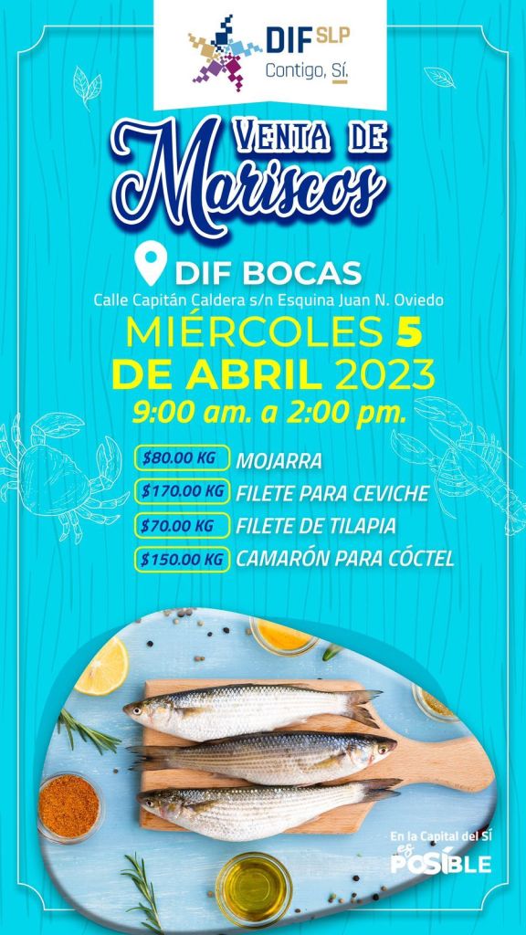 Gracias a la coordinación de esfuerzos entre el DIF Municipal y la delegación de Bocas, este miércoles 5 de abril, el programa de alimentación “Pescados y Mariscos, Cuaresma 2023” llegará y beneficiará a habitantes de esta demarcación de San Luis Potosí.