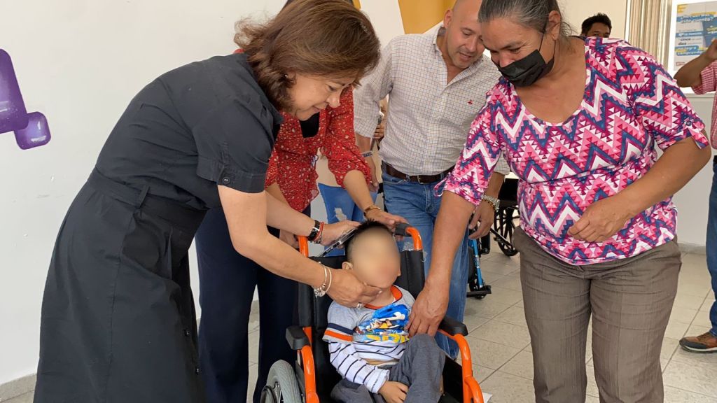 La Presidenta del Sistema Municipal DIF, Estela Arriaga Márquez, entregó más de 30 apoyos funcionales a niños y niñas con discapacidad, así como a personas adultas mayores, consistentes en bastones, andaderas, muletas y sillas de ruedas de diversos tipos.