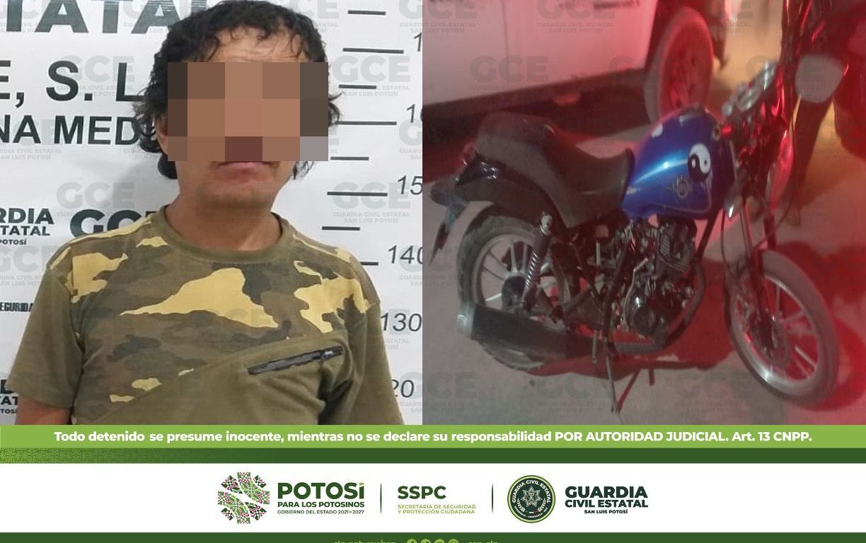Al momento de su detención, se le aseguró una motocicleta marca Italika, color azul con negro, con placa de esta Entidad, misma que fue puesta a disposición de la Fiscalía General del Estado junto al presunto.
