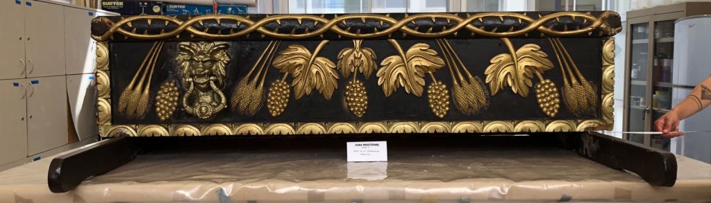 La coordinadora de la Licenciatura en Conservación y Restauración de Bienes Culturales Muebles, Dra. Lilia Narváez Hernández, detalló que el anda cuenta con unas molduras o tallas que representan el misterio eucarístico y salvifico haciendo alusión al cuerpo de Jesús y a la eucaristía, las espigas y aludiendo a su sangre, las uvas y hojas de vid.