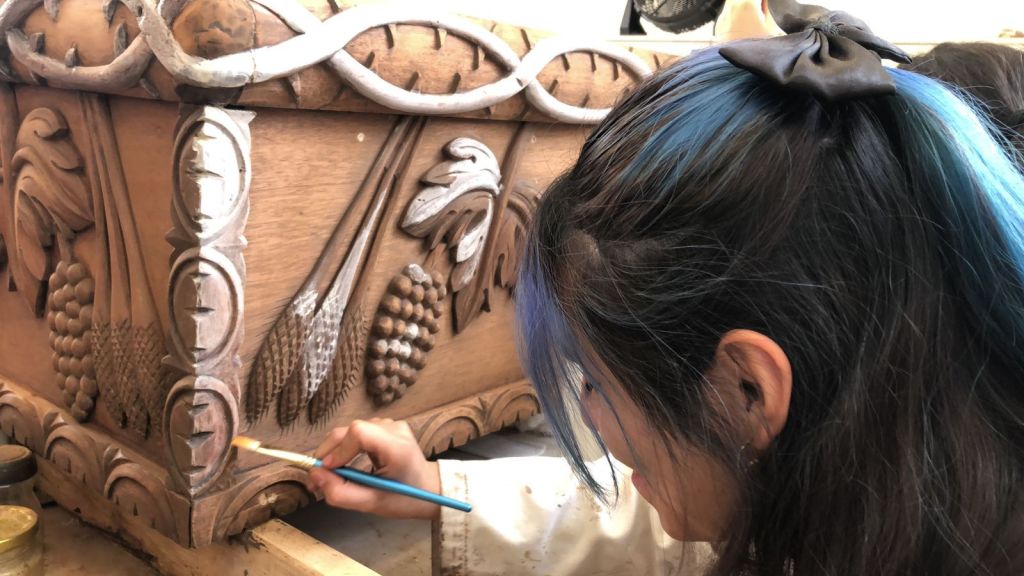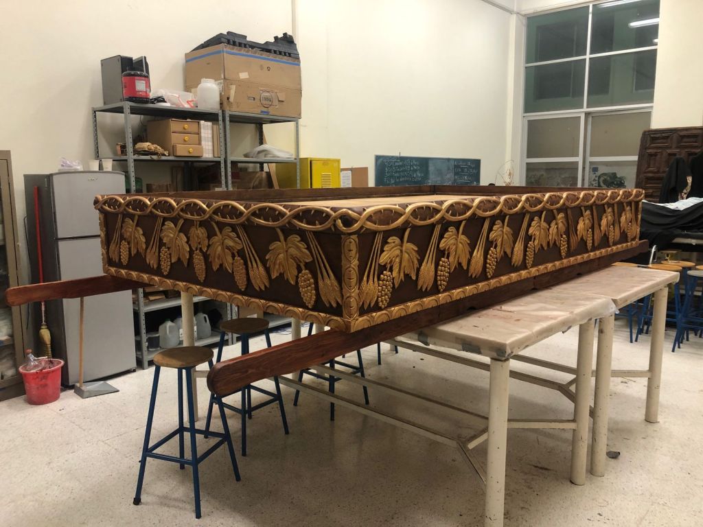 Las y los universitarios restauraron el anda procesional y mayor de la cofradia de la Preciosa Sangre de nuestro padre Jesús Nazareno, en su primera caída y su entrada triunfal en Jerusalén, y de nuestra Señora de los Dolores y San Dimas, en la cual se lleva la imagen de Jesús nazareno, y en conjunto la imagen de San Dimas, el buen ladrón, y Gestas.