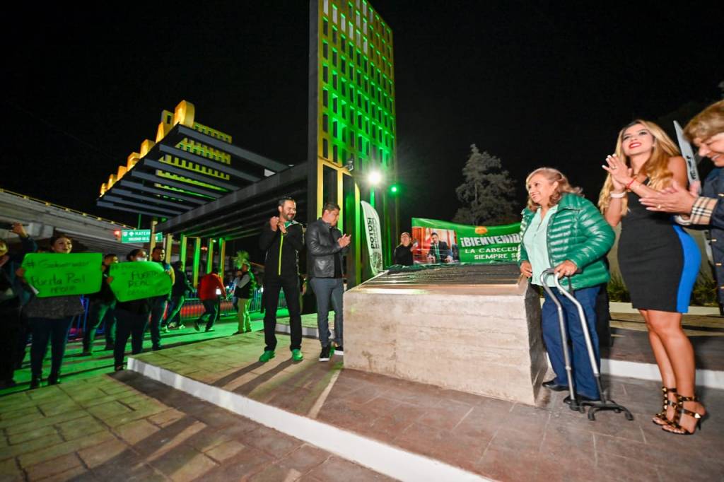 Gallardo Cardona, acompañado de cientos de amigos soledenses que lo recibieron como el mejor alcalde que ha tenido la demarcación y el único Gobernador que ha tenido un trato digno con la gente de Soledad de Graciano Sánchez, inauguró esta obra que tiene el objetivo de resaltar, dignificar y modernizar la entrada a la ciudad.