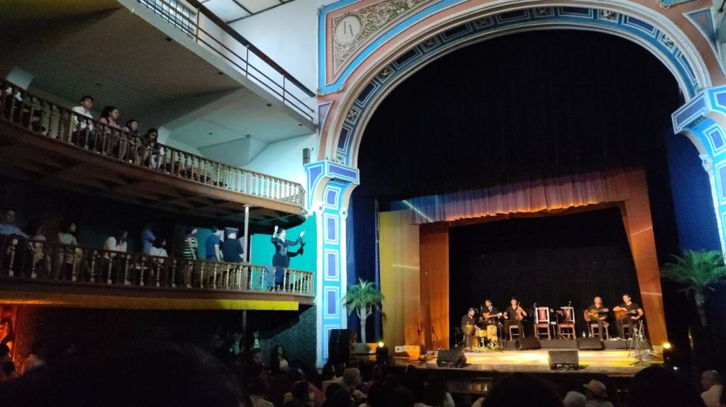 El icónico Teatro Alarcón, uno de los más antiguos de todo el país, se engalanó ayer con la Agrupación Luna y Cantera que presentaron el programa “Flamenco Plata y Cantera” dentro del II Festival Internacional San Luis en Primavera, al que se dieron cita cientos de asistentes que prácticamente abarrotaron este hermoso recinto que está a punto de cumplir 200 años.