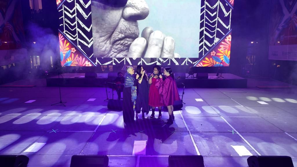 Las espléndidas voces de Eugenia León, Ximena Sariñana, Ely Guerra y La Marisoul, junto con el talento de la actriz Ofelia Medina, ofrecieron un magnífico espectáculo en la Plaza de Los Fundadores.