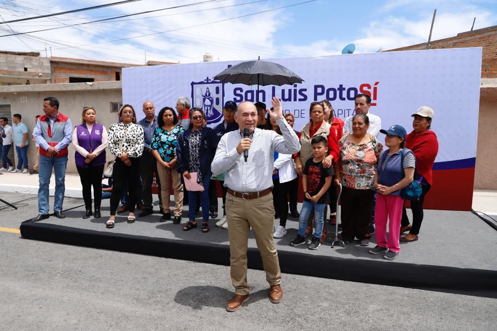 El Alcalde Enrique Galindo Ceballos encabezó la entrega de la obra de la calle Diana Laura Riojas, y el inicio de la rehabilitación de la calle Ponciano Arriaga Norte, ambas en la colonia Luis Donaldo Colosio, con lo que continúan las acciones de dignificación de las Vialidades Potosinas, para imprimirles una nueva y moderna fisonomía a esas arterias que nunca habían sido atendidas.