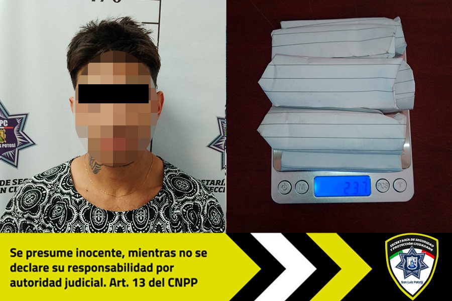 Como resultado de los patrullajes de seguridad y vigilancia en el cuadrante norte, oficiales municipales de la Secretaría de Seguridad y Protección Ciudadana (SSPC) efectuaron la detección y aseguramiento de un sujeto que fue sorprendido consumiendo enervantes en vía pública, al momento de realizarle una revisión preventiva de seguridad le fueron encontrado seis envoltorios que contenía hierba seca verde con las características similares a la marihuana.
