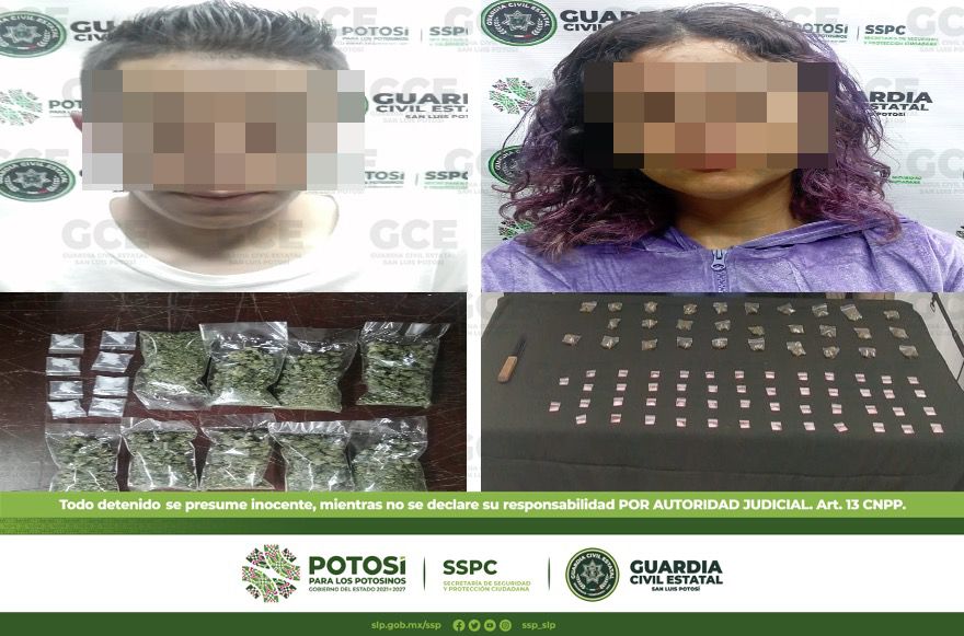 Dentro del Plan Integral de Seguridad que se lleva a cabo en el Estado potosino, la Guardia Civil Estatal (GCE) asestó un importante golpe al delito de narcomenudeo, al capturar en operaciones distintas a un hombre y una mujer en posesión de casi 100 dosis de droga, luego de estrategias de investigación e inteligencia.