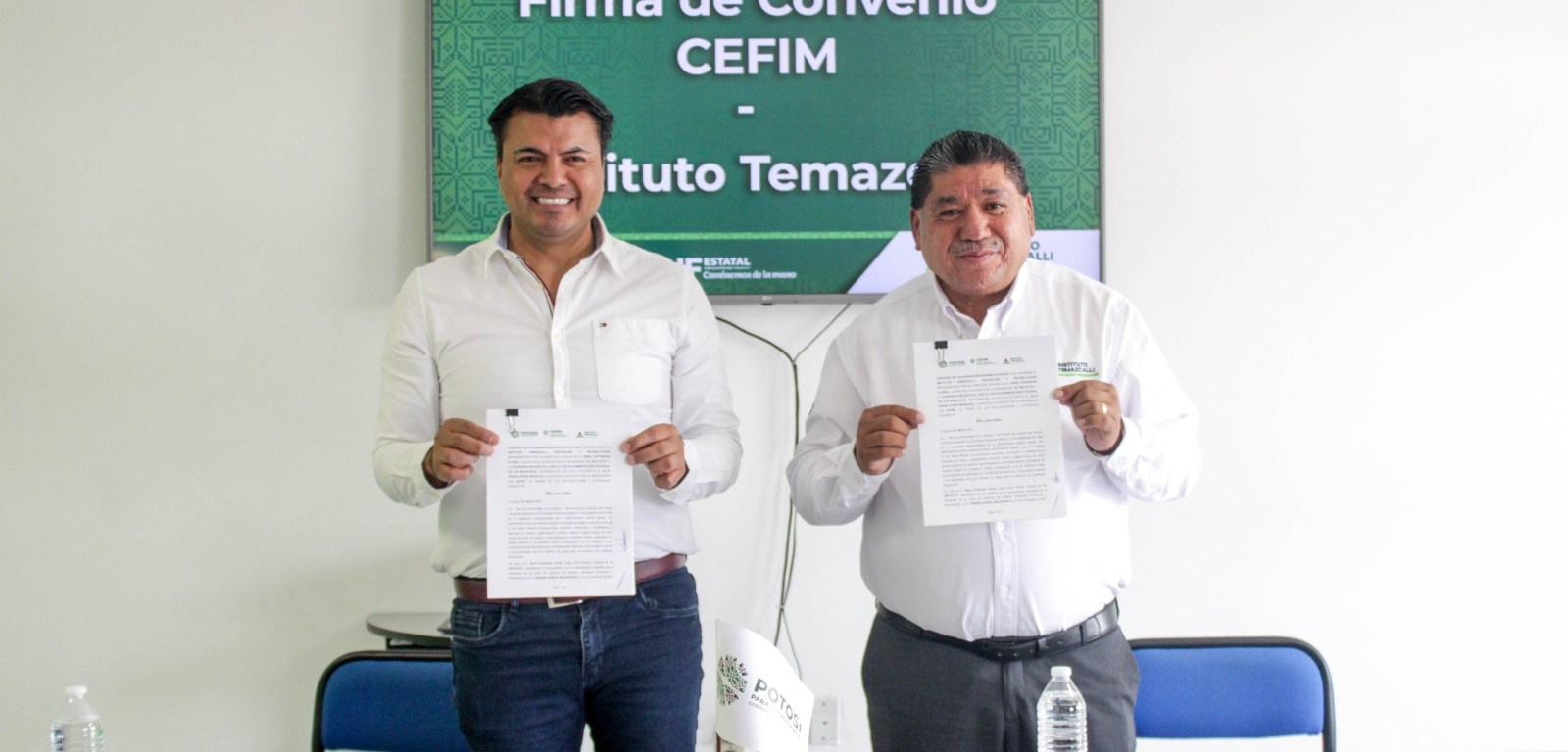En cumplimiento del compromiso de atender a los 58 municipios, como lo ha instruido el Gobernador de San Luis Potosí, Ricardo Gallardo Cardona, el Instituto Temazcalli y la Coordinación Estatal para el Fortalecimiento Institucional de los Municipios (CEFIM), firmaron un convenio que permitirá impartir talleres y pláticas en prevención y rehabilitación de adicciones, trastornos de la conducta alimentaria y cuidado de la salud mental, en las cuatro regiones del Estado.