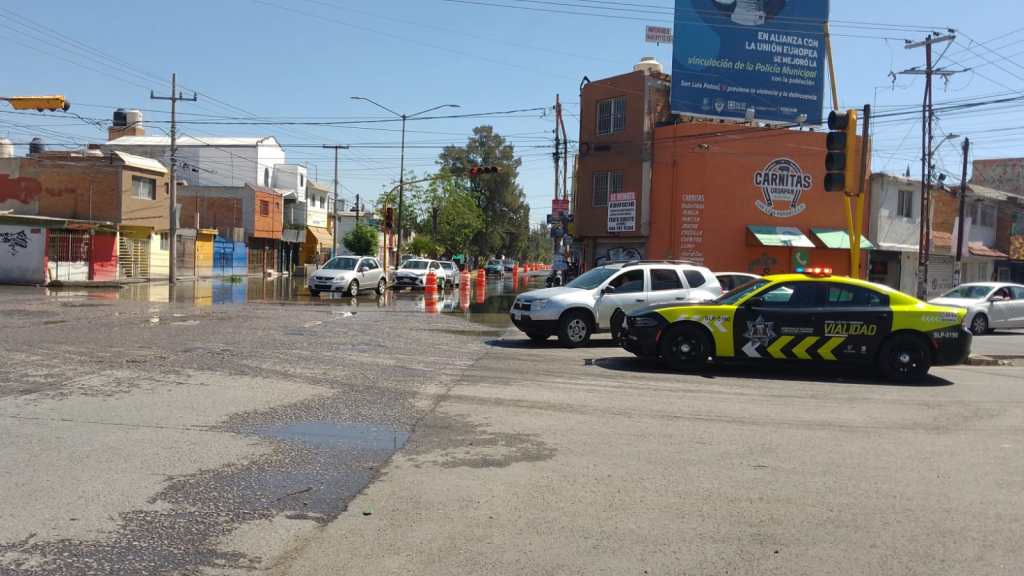 Con motivo de las obras de reparación de drenaje en la avenida Morales Saucito en el tramo de Prolongación Muñoz y calle Aeronáutica en el fraccionamiento Valle del Tecnológico, al norte de la ciudad, la Dirección General de Policía Vial y Movilidad ha implementado un dispositivo para canalizar la circulación vehicular.