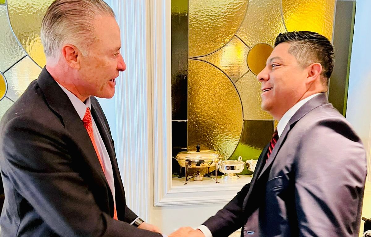 Madrid, España.- Tras sostener un encuentro con el Embajador de México en España, Quirino Ordaz Coppel, como parte de la misión comercial por Europa, el Gobernador de San Luis Potosí, Ricardo Gallardo Cardona, agradeció el respaldo para consolidar un esquema integral de intercambio entre España y San Luis Potosí, lo que permitirá reforzar la promoción mundial que se ha impulsado desde el inicio del Gobierno del cambio.