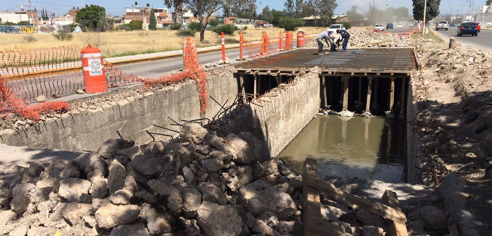 En cumplimiento a las políticas de trabajo que el Gobierno del cambio encabezado por Ricardo Gallardo Cardona ha priorizado para la mejora en la movilidad urbana, que abone a los rubros de seguridad, mantenimiento a la infraestructura, disminución de tiempos en traslados y la conectividad metropolitana, la Secretaría de Desarrollo Urbano, Vivienda y Obras Públicas (Seduvop), construye un colector pluvial en el bulevar Río Españita.