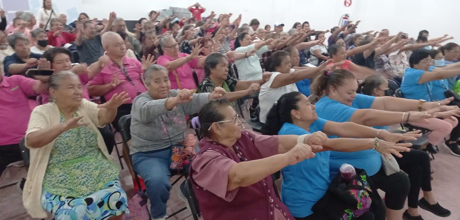 Más de 100 integrantes de los Clubes de Adultos Mayores del Sistema Municipal DIF, acudieron al «Taller de activación física contra el deterioro cognitivo y físico del adulto mayor», que impartió la instructora Minerva Valero, de la Coordinación de Deporte Adaptado de la Dirección de Deportes del Ayuntamiento Capitalino.