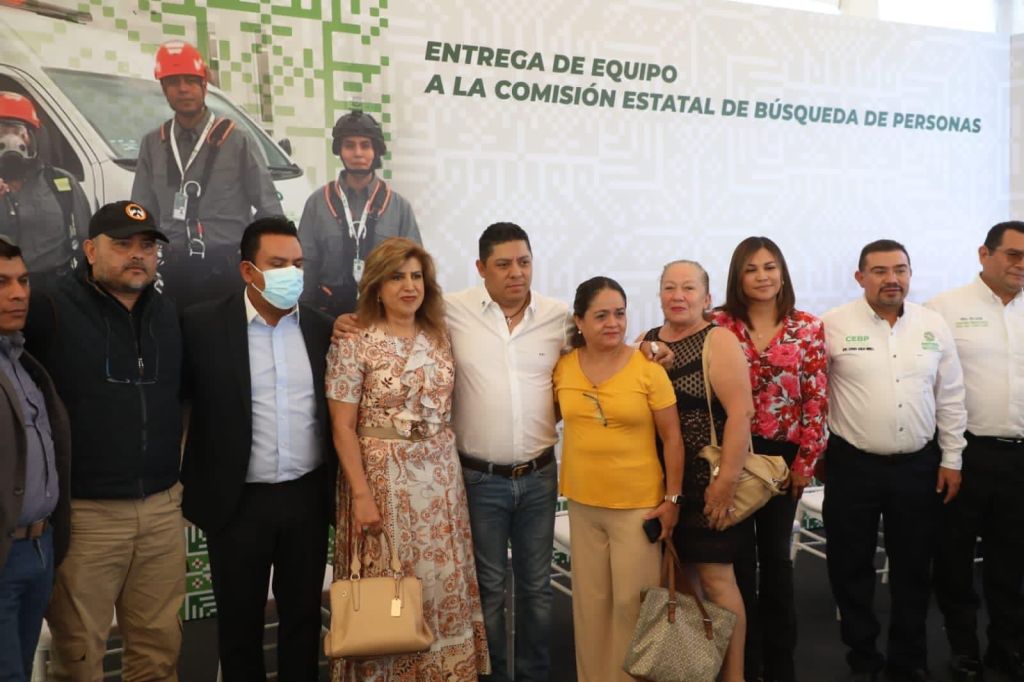 Frente a la mirada de representantes de colectivos de búsqueda de personas, como Voz y Dignidad, Fe y Esperanza, Grupo Civil de Búsqueda AC y Pirasol, el Gobernador entregó: tres camionetas, 10 equipos de cómputo, ocho de rapel, ocho de respiración autónoma, ocho de extracción de aire, uno de detección multigases, dos cámaras de video, un georradar, una red de comunicaciones, dos drones (acuático y aéreo), tres software, dos discos duros y pantalones, camisolas, botas pantaneras y tácticas.