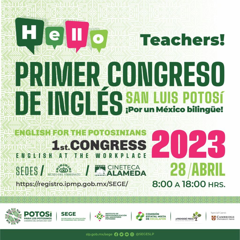 Derivado de convenios de colaboración con distintas instituciones que fortalecen la enseñanza y aprendizaje del idioma inglés a favor de las niñas, niños y jóvenes potosinos, el Gobierno del cambio que dirige Ricardo Gallardo Cardona, a través de la Secretaría de Educación del Gobierno del Estado (SEGE), concretó el Primer Congreso Nacional “English at the workplace” que se llevará a cabo este viernes 28 de abril.