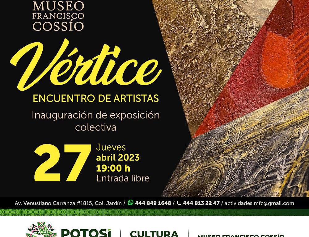 La Secretaría de Cultura de San Luis Potosí, invita a la inauguración de la exposición colectiva “Vértice. Encuentro de artistas” que se llevará a cabo el jueves 27 de abril, a las 19:00 horas en la Sala Potosina del Museo Francisco Cossío, entrada libre.