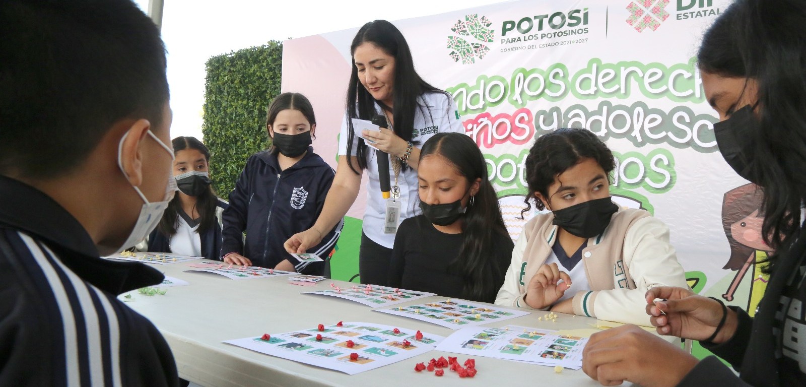 En seguimiento a la política de atención social del Gobernador de San Luis Potosí, Ricardo Gallardo Cardona, en las instalaciones de la escuela primaria “Lic. Jesús Silva Herzog Ford No. 176”, en la colonia La Sierra, en Soledad de Graciano Sánchez, las y los menores participantes convivieron y recibieron información para conocer sus derechos y de esta manera poder expresarse y saber a dónde acudir cuando los identifiquen vulnerados.
