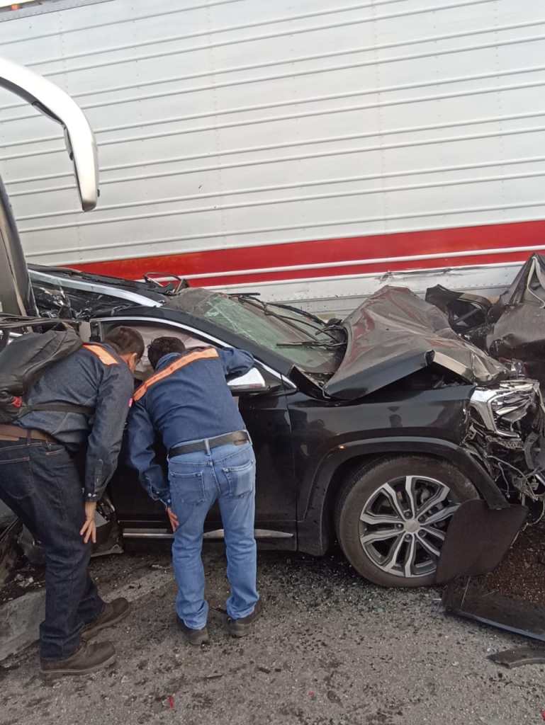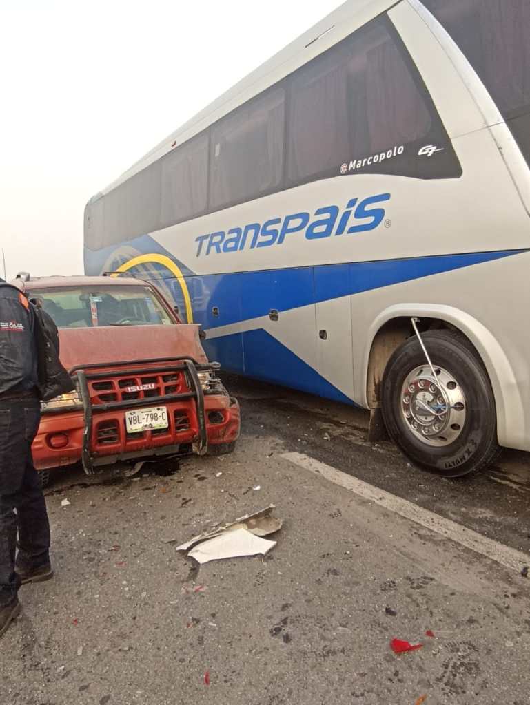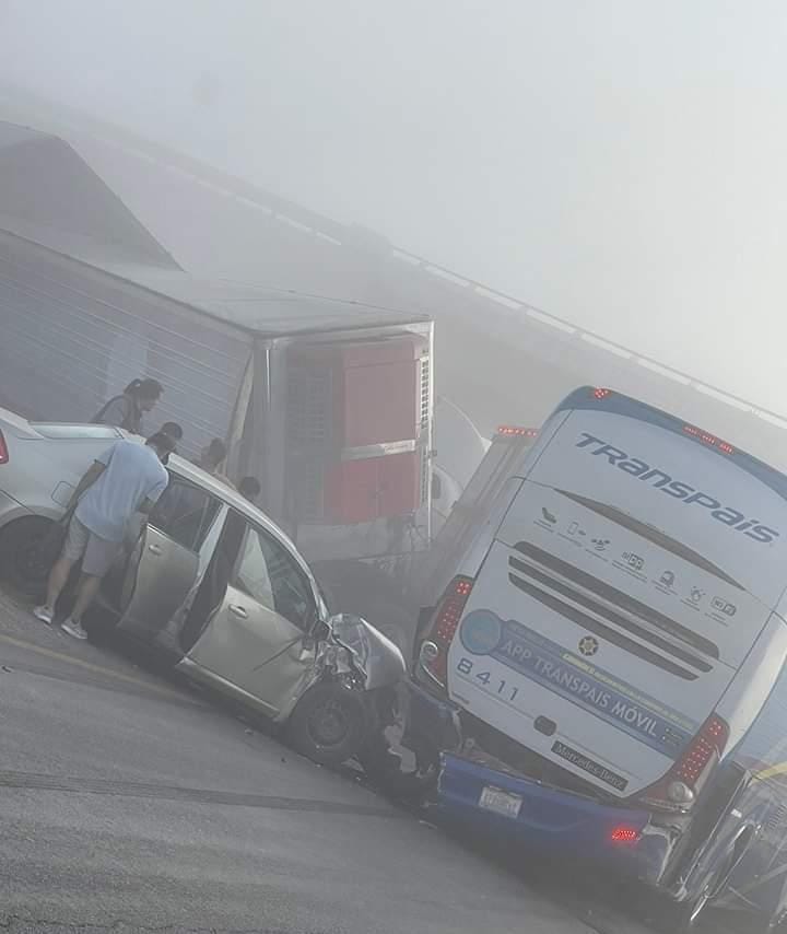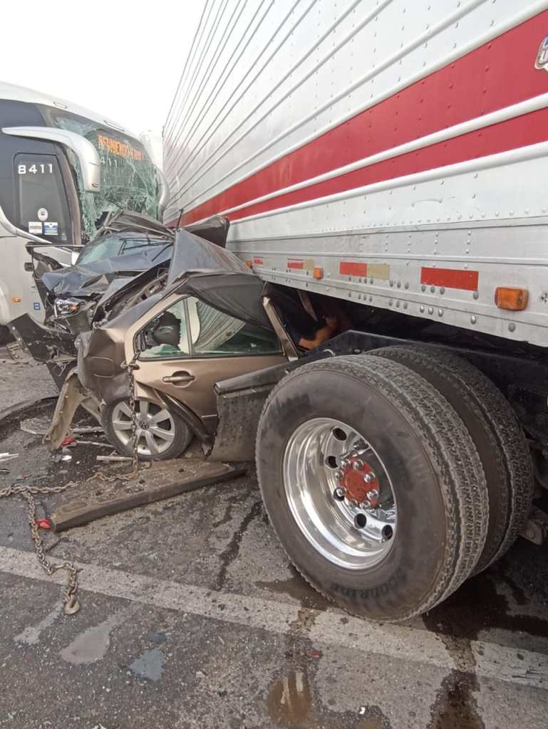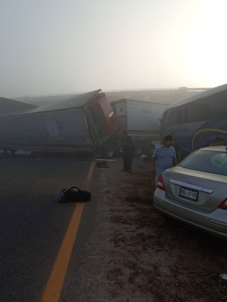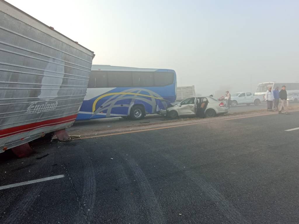 Esta mañana de viernes 28 de abril se registro un terrible accidente en la carretera a Matehuala por la neblina se vieron involucrados varios automóviles, tráiler y autobús de pasajeros.