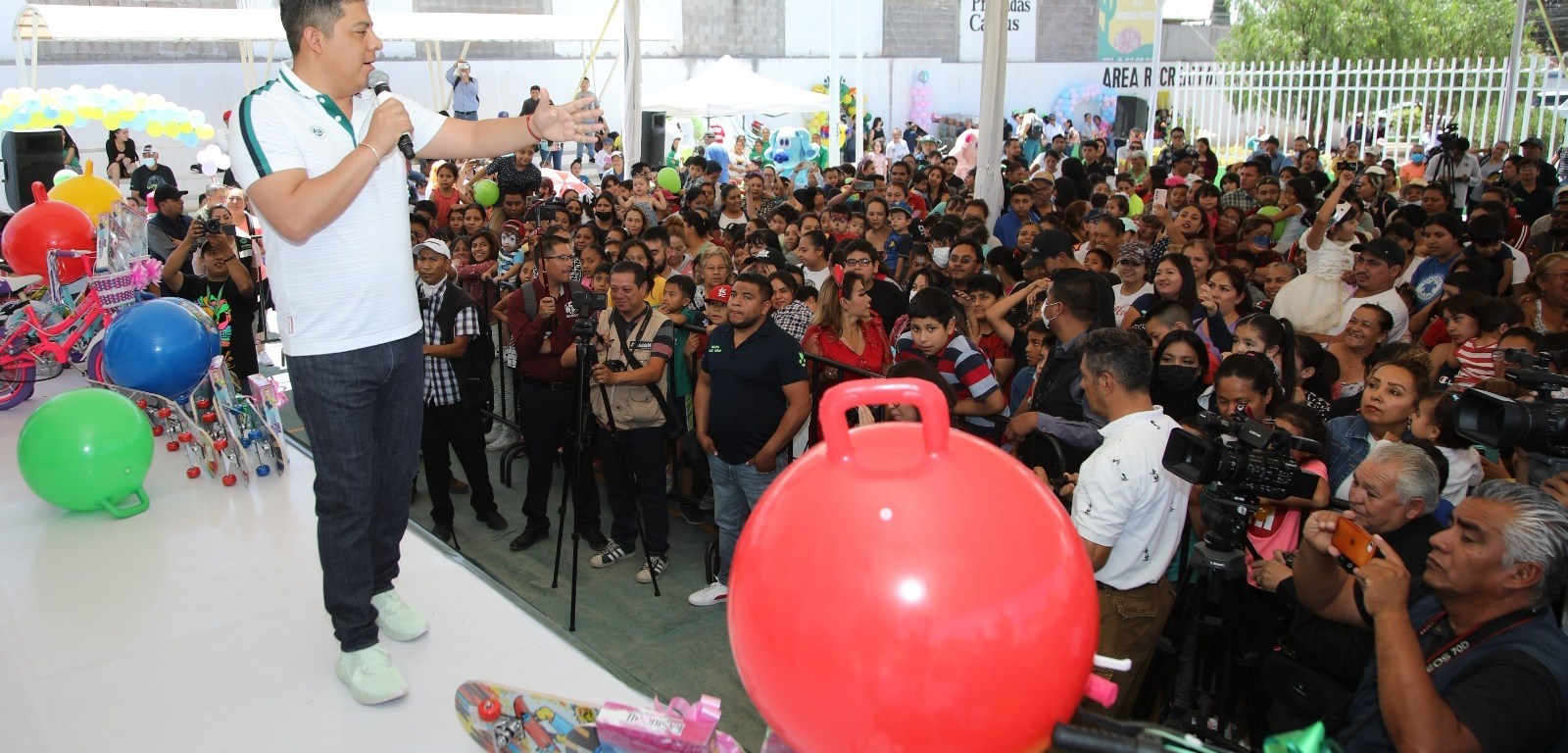 En medio de un ambiente festivo, cordial y de sana convivencia, el Gobernador de San Luis Potosí, Ricardo Gallardo Cardona, encabezó este jueves la celebración del Día de las Niñas y los Niños, donde entregó dos mil juguetes, además de que se ofreció un atractivo Show Infantil y muchas sorpresas, como nunca se había hecho en su día.