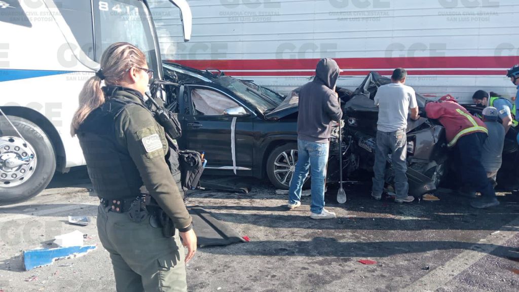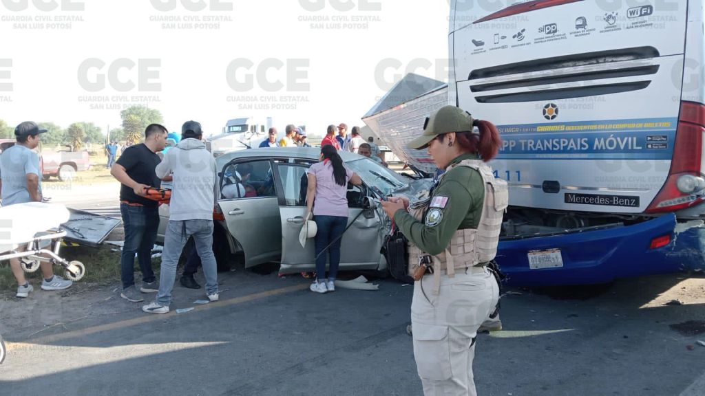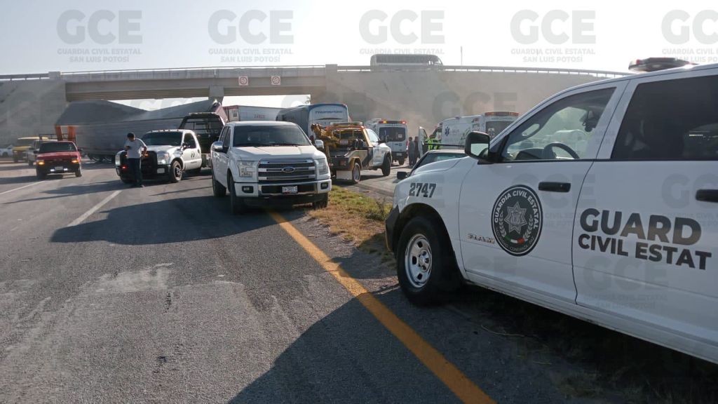 Luego de registrarse un fuerte accidente en un tramo de la carrera a Matehuala entre varios vehículos y unidades pesadas, oficiales de la Guardia Civil Estatal (GCE) acudieron en auxilio de las personas afectadas.