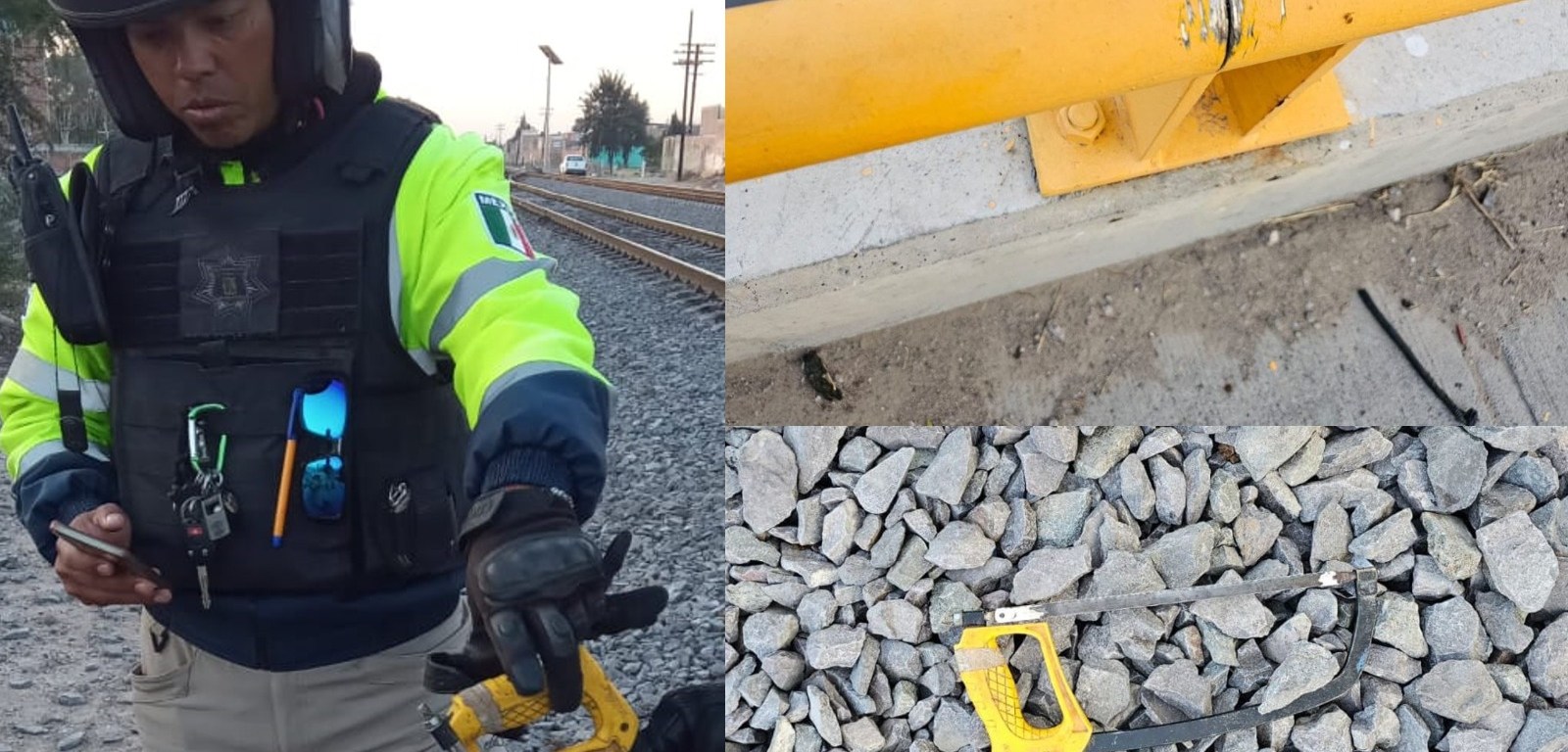 Durante la detención, se encontró que el sujeto portaba una cegueta con la que había hecho varios cortes en distintos tramos del barandal de metal, presuntamente con la intención de desmantelarlos para venderlos.