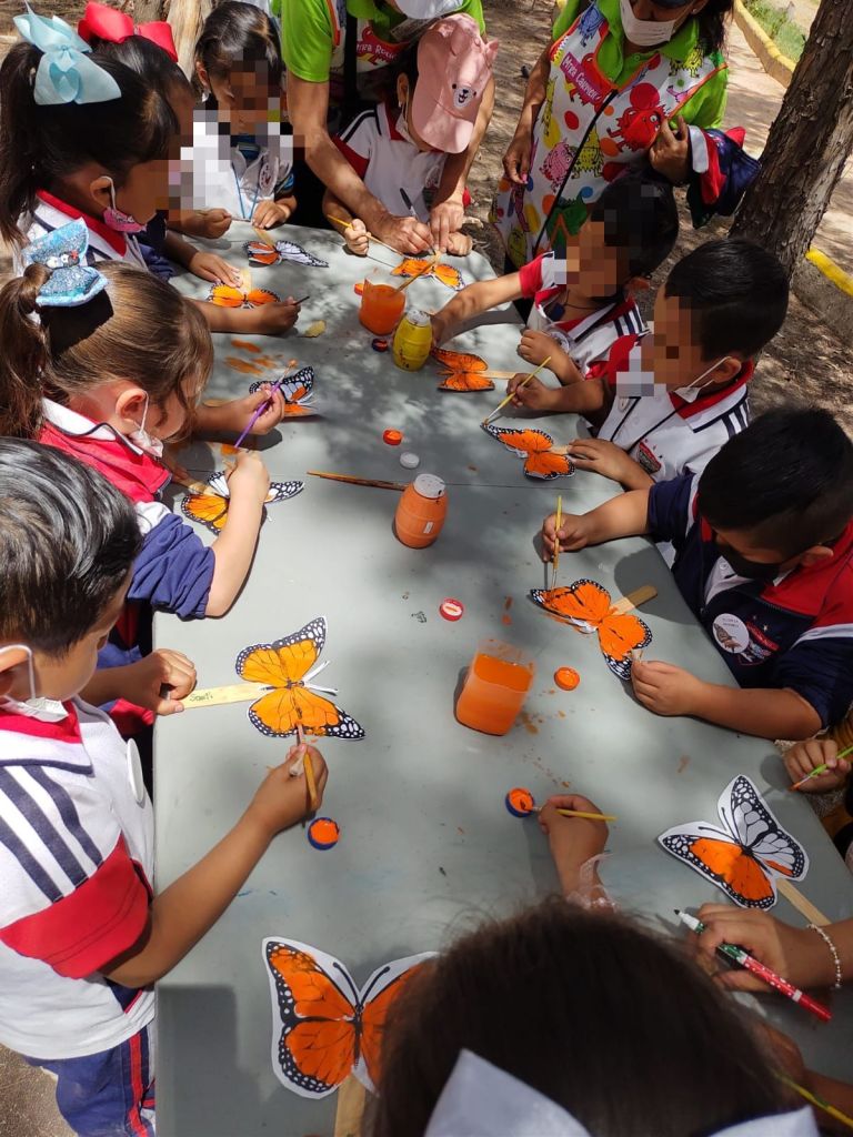 Niñas y niños se fascinaron con la explicación de la migración de la mariposa monarca, su paso por la ciudad y se inspiraron para dibujarlas y colorearlas. Igualmente, en el huerto de la Casa Colorada tocaron, olieron y conocieron más acerca de diversas plantas y su relevancia para contar con un medio ambiente más sano.