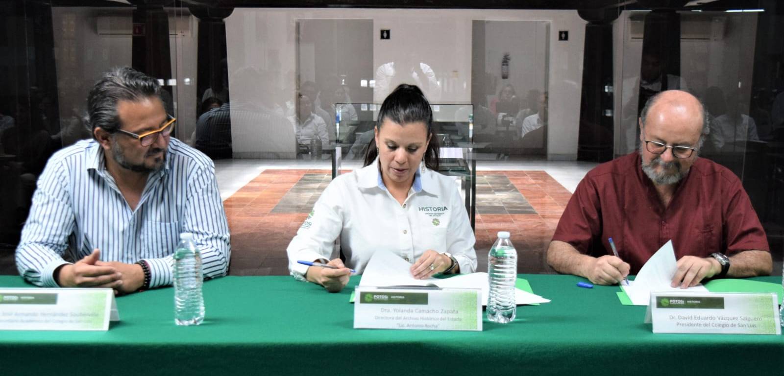 Para hacer sinergia a favor de la aplicación de modernos sistemas informáticos y nuevas tecnologías en el trabajo que realiza el Gobierno del cambio que lidera Ricardo Gallardo Cardona, el Archivo Histórico del Estado “Lic. Antonio Rocha”, firmó un convenio de colaboración con el Colegio de San Luis (Colsan), con el que se implementarán acciones conjuntas para la transformación de la práctica archivística en San Luis Potosí.