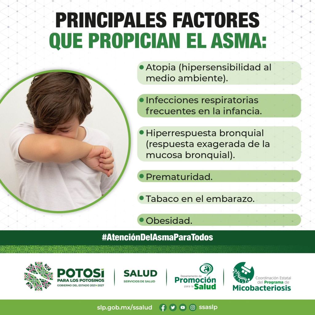 En marco de la conmemoración del Día Mundial del Asma, los Servicios de Salud de San Luis Potosí, Angélica Hernández Torres, Coordinadora Estatal de Micobacteriosis recomendó que en caso de sospechar de padecer asma, y no cuente con seguridad social, acuda a su centro de salud más cercano para que el médico realice las pruebas necesarias y descartar o determinar si padece esta enfermedad y comenzar tratamiento de forma oportuna y gratuita.