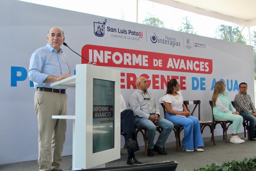 “La prioridad de Enrique Galindo es el agua”, señaló el Presidente Municipal durante la presentación del Informe de Avances del Plan Emergente de Agua, con el que el Interapas y el Gobierno de San Luis Capital enfrentan la crisis de agua que se vive en la ciudad a causa de las constantes fallas del acueducto y la fisura de la Presa El Realito. “No es un problema del Ayuntamiento ni del Interapas. Es un problema de todo San Luis Potosí, la solución está en las manos de todas y todos nosotros”.
