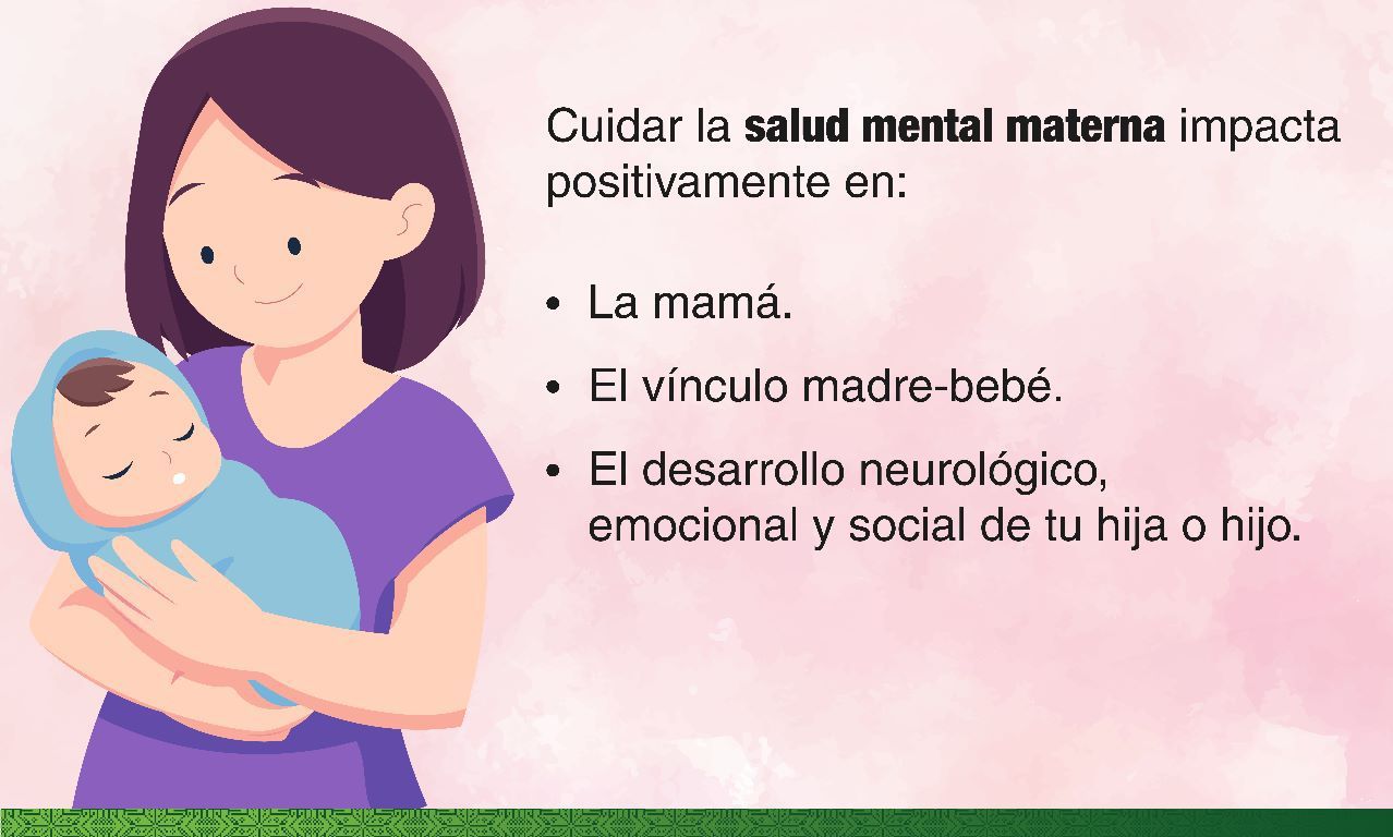 La salud mental materna es el estado de bienestar emocional, psicológico y social de una mujer durante la planeación de un embarazo, el embarazo y un año después de que nace la o el bebé, explicó la Mtra. Lucero Torres Moreno, Responsable Estatal del Programa de Salud Mental de los Servicios de Salud de Gobierno del Estado.